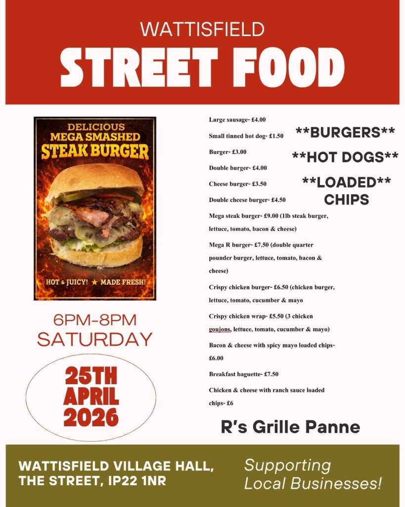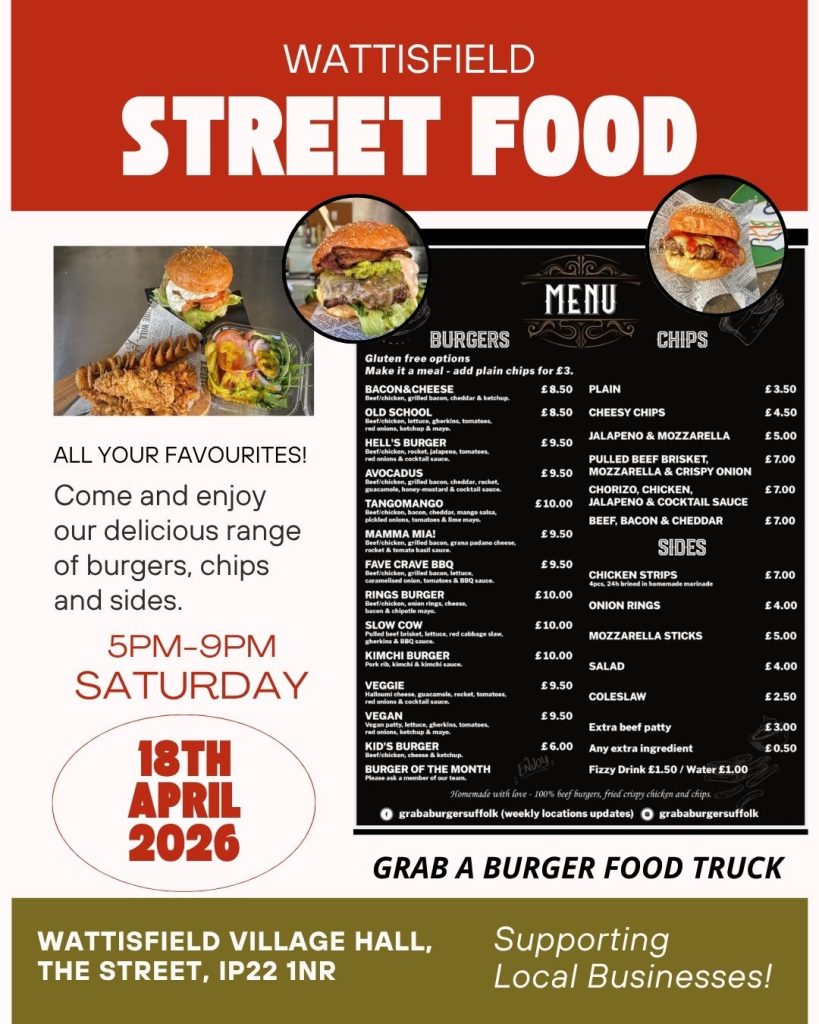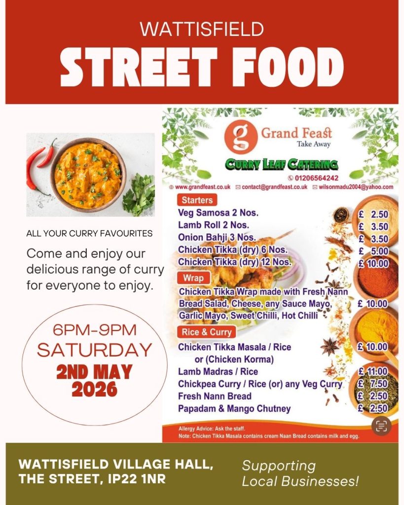 We’re delighted to welcome a fantastic line-up of independent street food traders to Wattisfield Village Hall.